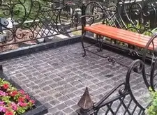 Что же потребовалось нам для существенного улучшения ситуации? Мы поставили ограду на гранитный цоколь. Это значительно улучшило ее восприятие как ограждения. Ограду сын усопшего покрасил сам, это очень показательно для меня в деле обустройство мест захоронений, не каждый найдет силы и время. Мы уложили пол из гранитной брусчатки. Установили новую лавочку и обновили изображение и надпись на памятнике. Сделали удобный подход к могиле от дороги. Результат нашей работы перед вами ниже.