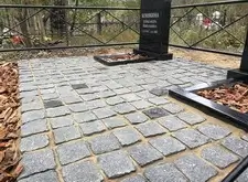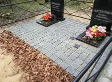 После создания основания мы покрыли территорию места захоронения гранитной брусчаткой,