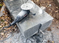 Затем мы аккуратно сняли само надгробье с постамента, после чего смогли свободно работать на участке.