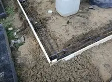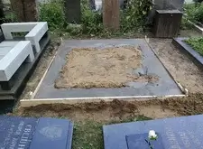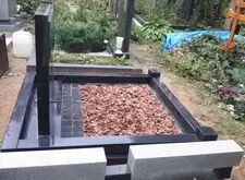 Первое, что мы делаем – этом демонтируем всё, что находилось на участке. Затем устанавливаем по периметру места захоронения надёжный цоколь, основывающийся на армированном каркасе.