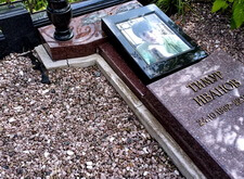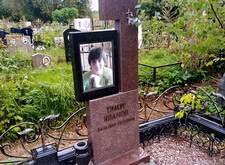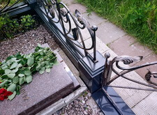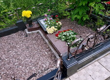 Так выглядит окончательный вариант места захоронения. В правую верхнюю часть надгробья мы установили заранее изготовленный элемент, на