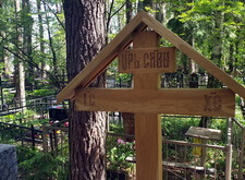 Дождавшись хорошей погоды мы вновь вернулись на могилу. Крест мы покрыли защитным составом, который исполняет одновременно защитную и влагоотталкивающую функцию.