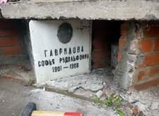 Для начала мы изготовили новые таблички, согласовав их дизайн с клиентом. Затем, по приезду на кладбище, мы извлекли из ниши уже находившиеся там плиты.