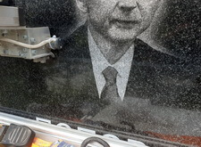 Затем, периодически поливая гранит водой, постепенно увеличивали мягкость насадок, пока не сделали бывший портрет не отличимым от остальной поверхности.